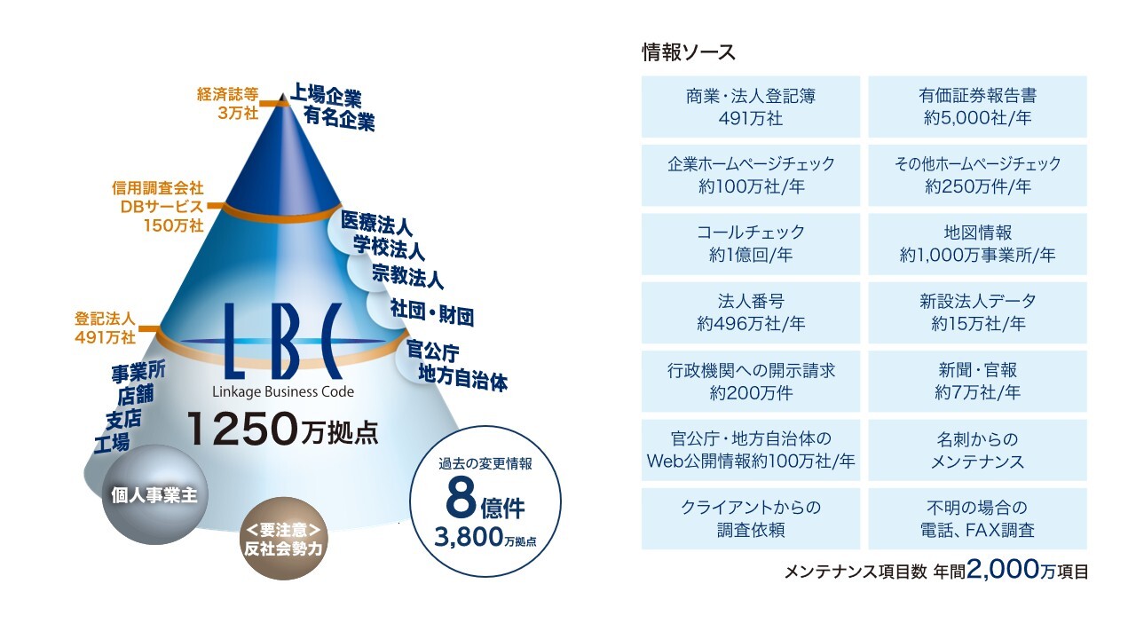 日本最大級1250万件の法人データベース「LBC」で、インサイドセールスの加速をサポートします。